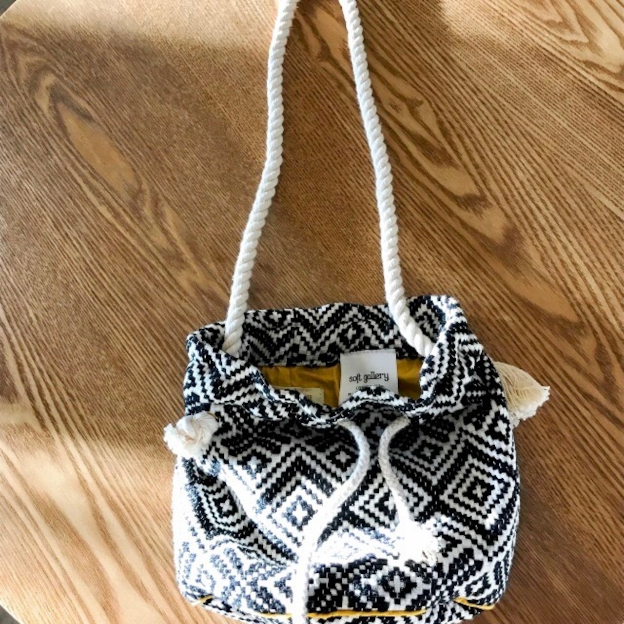 デンマークのこども服ブランド「soft gallery」のショルダーポーチ。小さなバケツ型ポーチなのでとても軽量で、ショルダー部分はコットン紐で柔らかく肩にかけても負担になりにくい作りになっています。お財布、携帯、ハンカチを入れると丁度良いサイズ。口の部分は巾着のように絞って開け閉めする仕様です。