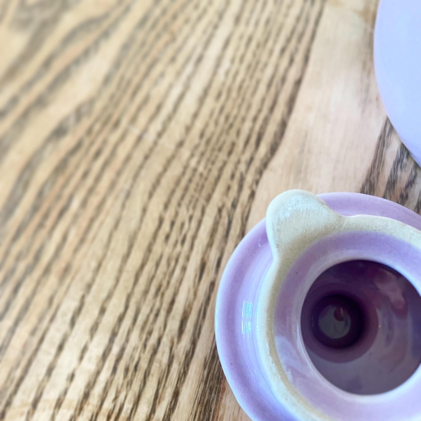 丸みを帯びたポットはお湯を注ぐと茶葉が渦巻くように泳ぎ、おいしい紅茶を淹れることができるトラディショナルな形。またステンレス製のストレーナーは本体にセットしてフタでロックするシンプルな作りで、ポットを傾けたときにフタが外れにく今構造になっています。このパープルカラーは期間限定で生産された珍しいもの。サイズは2カップ用です。